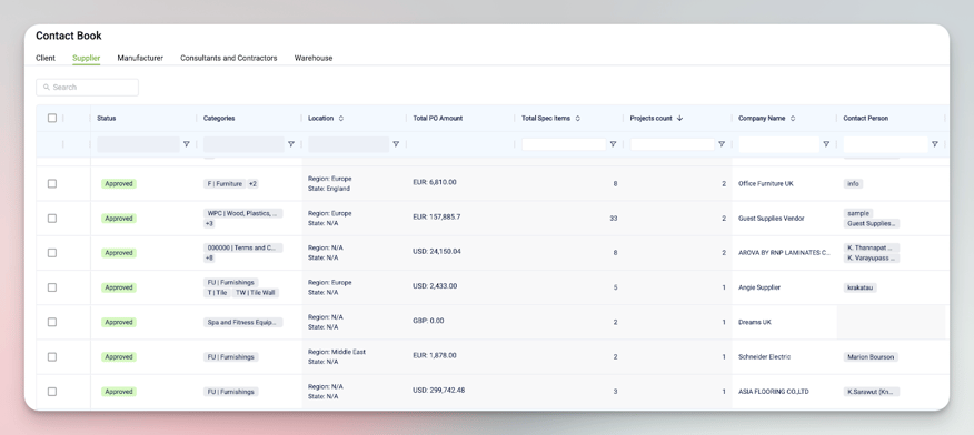 - Contact Book improvements – more flexible tagging, supplier analytics, and a cleaner way to manage preferred and inactive partners